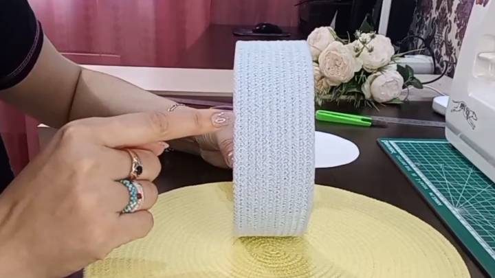 Прошейте на машинке достаточно рядов. Должно получиться кольцо высотой 5 см.