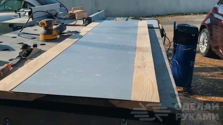 Из инструмента потребуется ручная циркулярка (лучше распилить доску на циркулярной пиле), дрель или шуруповерт и шлифмашинка.
