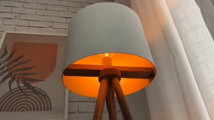 Получился потрясающий торшер своими руками! Да ещё и с дополнительной полкой для домашних цветов.