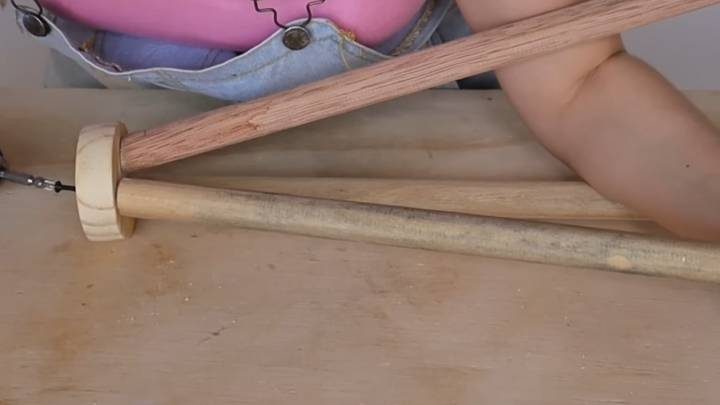 Черенки от лопаты/швабры зачистите шлифмашинкой или вручную наждачной бумагой. С одной стороны подрежьте край под углом 30 градусов.