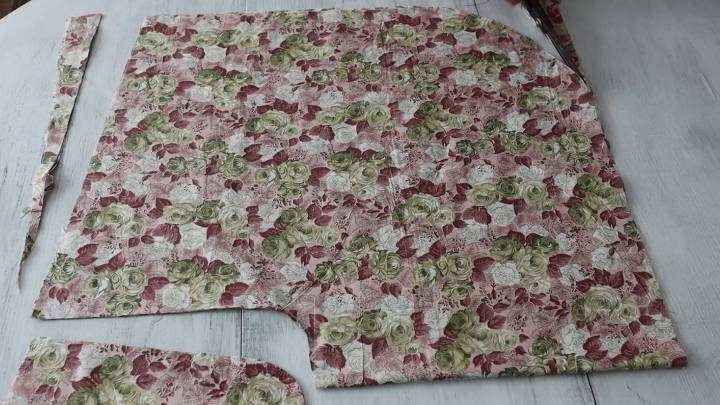 Сложите ткань вчетверо. Раскроите, согласно схеме выше. После этого раскройте ткань и внесите небольшие изменения.