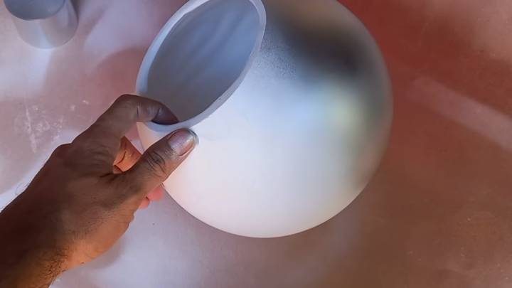 Покрутите шар в руках в разные стороны около 30 секунд. Тогда гипс внутри распределится по стенкам. Поставьте на стол и подождите 30 минут, чтобы гипс затвердел.