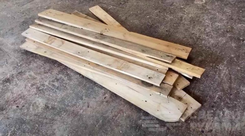 Для изготовления данной конструкции можно использовать даже старые доски (например, автор использует доски от поддонов).