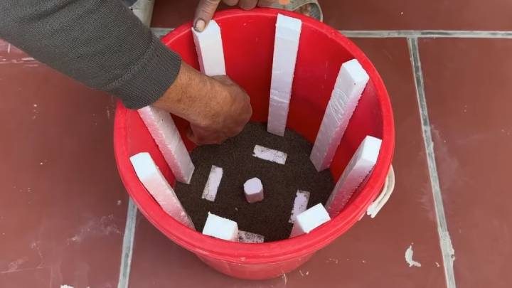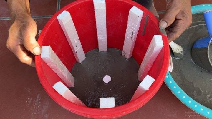 Бюджетная идея для участка из цемента, ведра и пенопласта