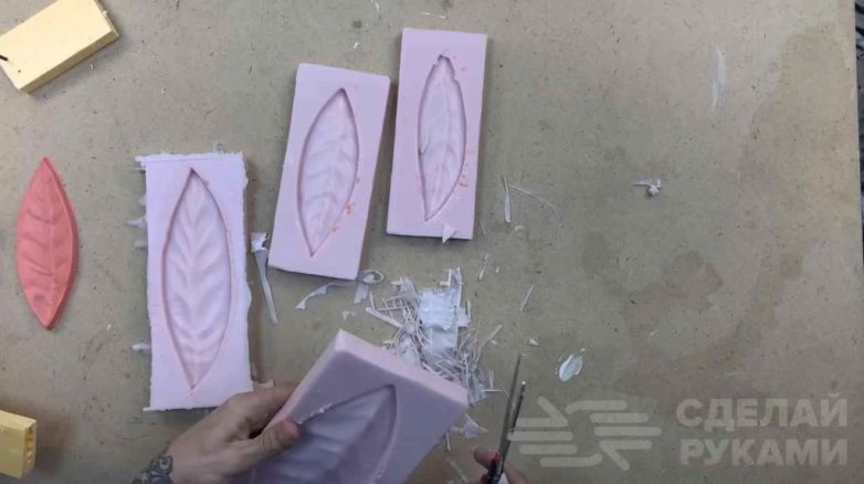Примерно через 16-20 часов, когда силикон застынет, разбираем опалубку, а излишки силикона обрезаем ножницами.
