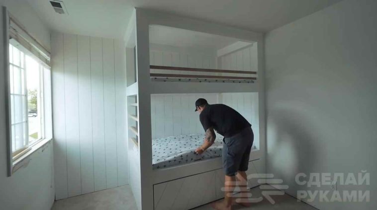 Подробно о том, как самостоятельно сделать детскую двухъярусную кровать из досок и фанеры, смотрите на видео ниже. Материал подготовлен на основе видео с YouTube канала.