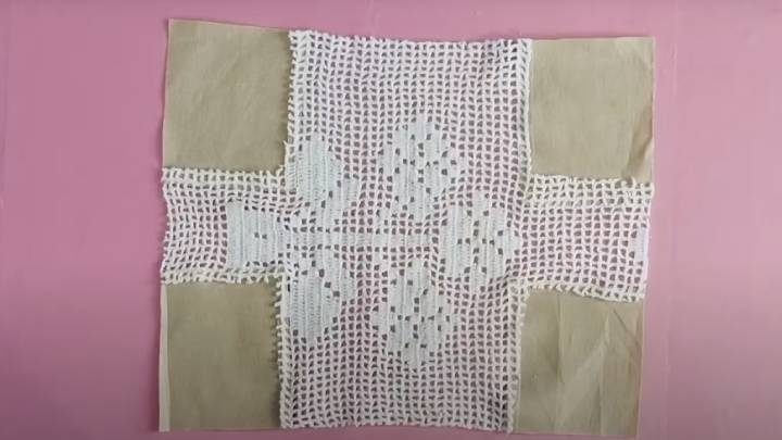 Вырежьте из ненужной скатерти прямоугольник без углов. Выглядеть это будет следующим образом: