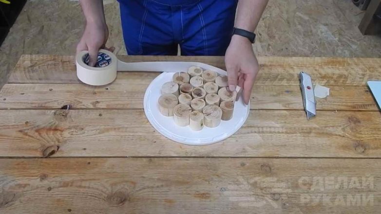 Первым делом необходимо напилить спилы дерева (желательно из плодовых деревьев) одинакового размера.