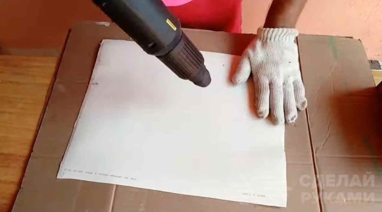 При необходимости разрезаем этот кусок пластиковой трубы на отрезки нужной длины. Затем с помощью строительного фена придаем заготовкам форму листа.