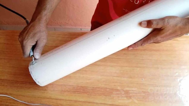 Берем кусок ПВХ трубы подходящей длины, и разрезаем его вдоль. Это можно сделать с помощью болгарки или бормашинки.