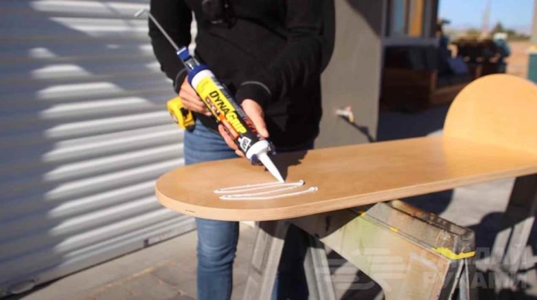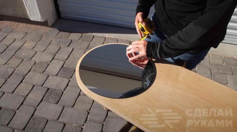 Первым делом необходимо будет отпилить по размеру прямоугольный кусок фанеры (ширина и длина — на ваше усмотрение).