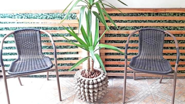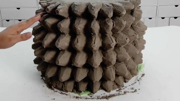 Оригинальный вазон из яичных лотков! Необыкновенный, вместительный и очень заметный.