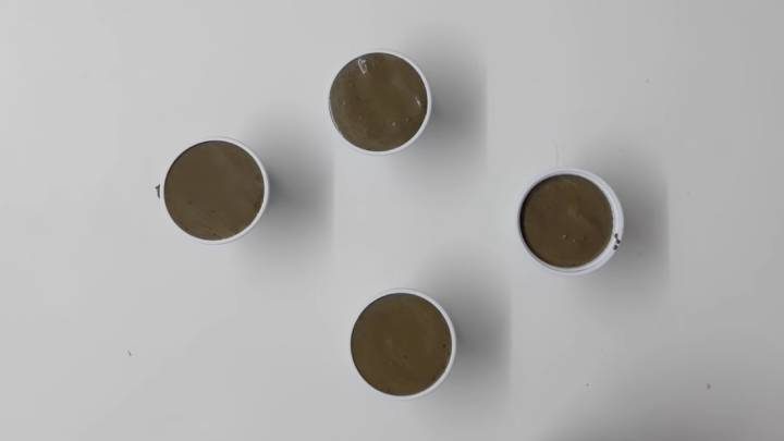 Одновременно с основной поделкой подготовьте ножки. Залейте пластиковые стаканчики таким же цементно-песочным раствором.