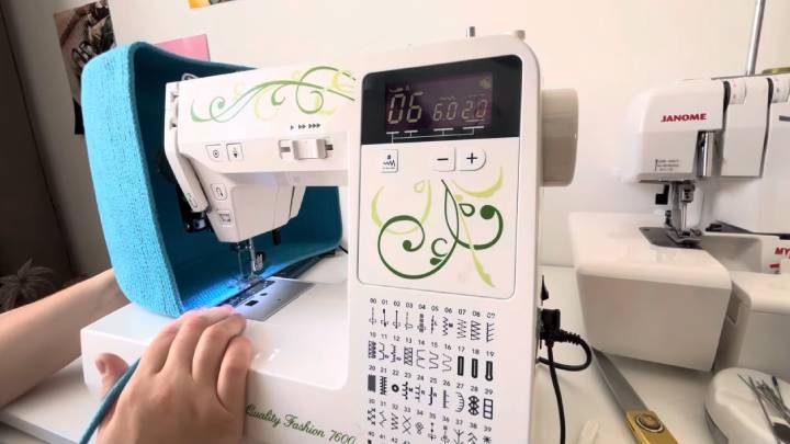 Изделие должно стоять вровень с машинкой. Продолжайте шить зигзагом ряд за рядом.