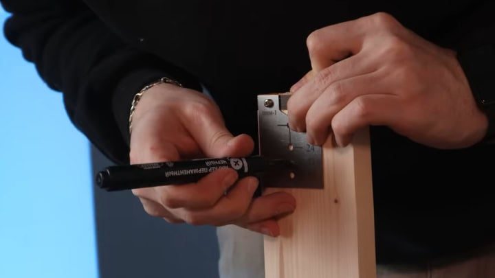 Крепить все детали мягкой мебели лучше всего эксцентриковой стяжкой (невидимый крепеж). Для облегчения работы используйте специальный шаблон.