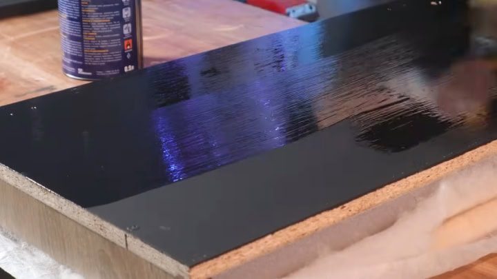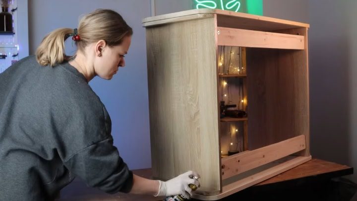 Соберите скругленные верх и низ, а также боковые части обратно. Дополнительно проклейте. Внутрь по центру закрепите полку.