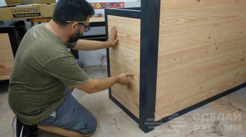 В данном обзоре автор показывает, как сделать барную стойку для дома из профильной трубы и досок (деревянной вагонки).