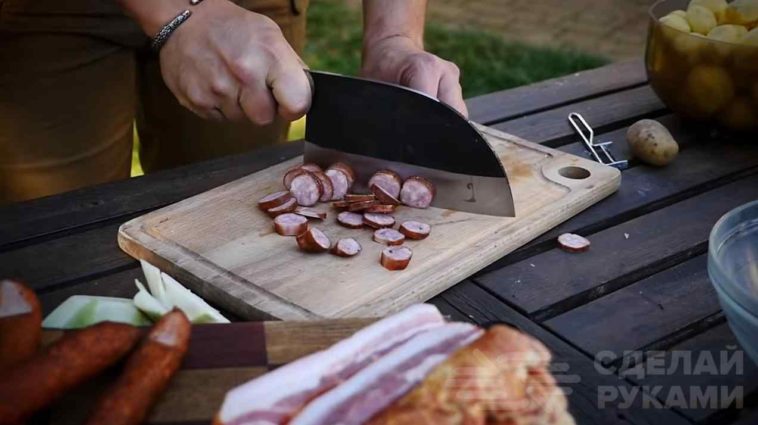 Подробно о том, как изготовить своими руками большой кухонный нож из старой дисковой пилы по дереву, можно посмотреть на видео.