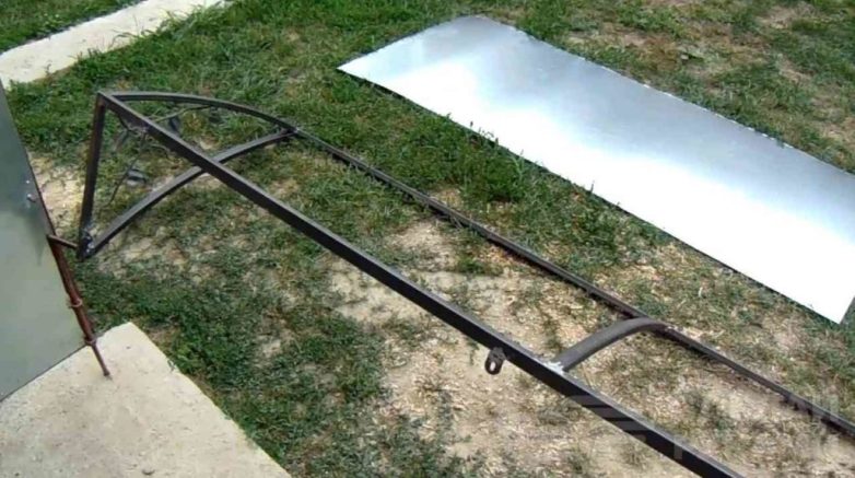 Козырек состоит из каркаса и кровельного материала. Для каркаса будем использовать профильную трубу, а накроем козырек листовым металлом.