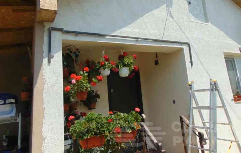Во-первых, он надежно укрывает собой крыльцо и входную дверь от дождя. Во-вторых, козырек поможет спрятаться от непогоды самим хозяевам дома.