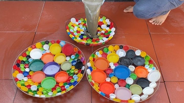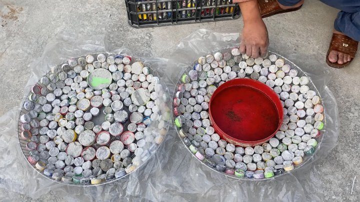 Красивая вещь из пластиковых крышек