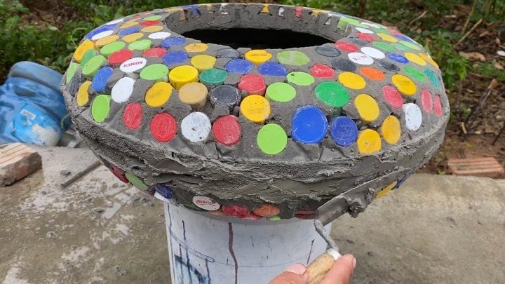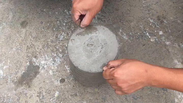 У 5 л пластиковой бутылки обрежьте верхнюю часть с горлышком, заполните цементным раствором. После затвердевания удалите пластик.