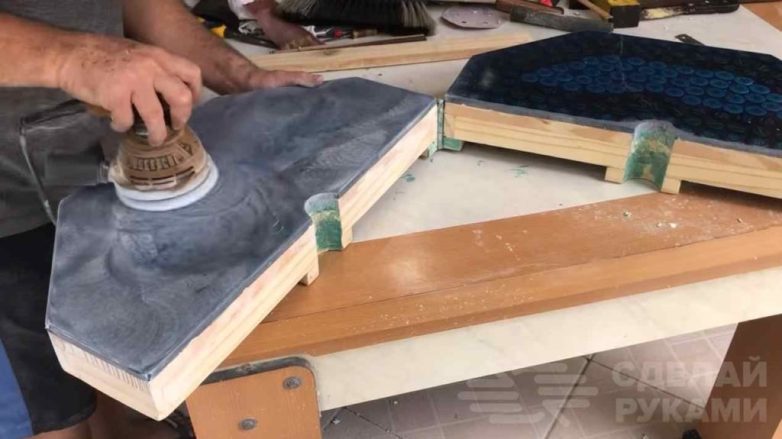 После того, как эпоксидка затвердеет, удаляем временную опалубку и приступаем к шлифовальным работам.