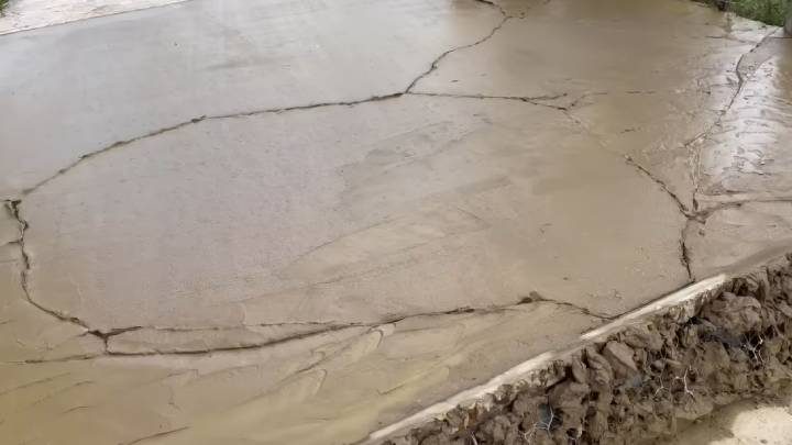ЦПС разведите водой согласно инструкции. Добавьте краситель по желанию. Выложите базовый слой ЦПС, выровняйте. Для пешеходной дорожки толщина составляет около 5-6 см.