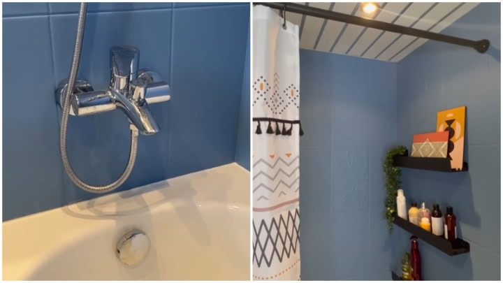 Для преображения ванной комнаты вам понадобится специальная краска для влажных помещений + грунт. Можно приобрести баночку 2в1, где и грунт, и краска одновременно. Нанесите в несколько слоёв валиком, с промежуточной просушкой