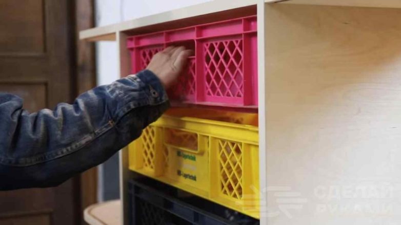 Подробно о том, как сделать тумбу с выдвижными ящиками своими руками, можно посмотреть в видеоролике на сайте.