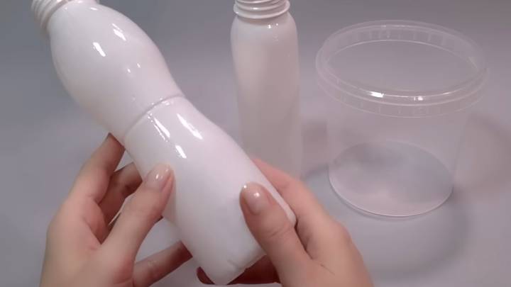 Белая пластиковая бутылка от йогурта любой формы — 3-4 шт.;