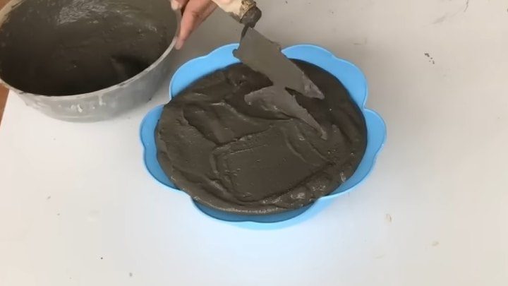 В миску поместите тарелку вверх дном, смазанную маслом. Наполните цементным раствором. Сделайте отверстие по центру (например, установите ПВХ трубу).