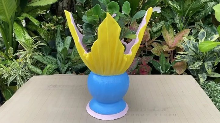 Возьмите кашпо или горшок, оберните пакетом. Сверху установите мячик.