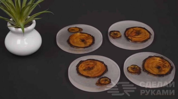 Подробно о том, как изготовить декоративные подставки из эпоксидной смолы и дерева, можете посмотреть в данном видеоролике.