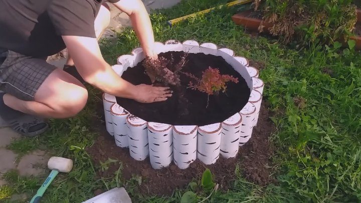 Выкопайте неглубокую траншею вокруг клумбы. Установите самодельный бордюрчик и высадите цветы!