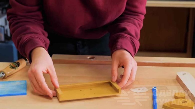 После этого автор приступает к сборке всей конструкции. Еще раз обращаем внимание, что в данном случае поворотная подставка делается совместно с полкой.