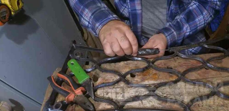 Далее в том месте, где отсутствует кусок чугунного литья, автор сверлит отверстия. В них надо будет вставить кусок проволоки.