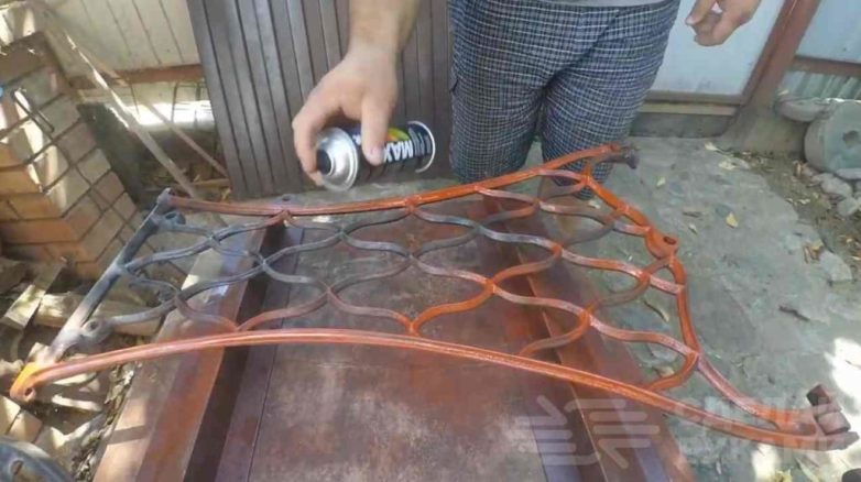 После этого можно приступать к покраске отреставрированной ножки. Сначала покрываем металл аэрозольным грунтом.