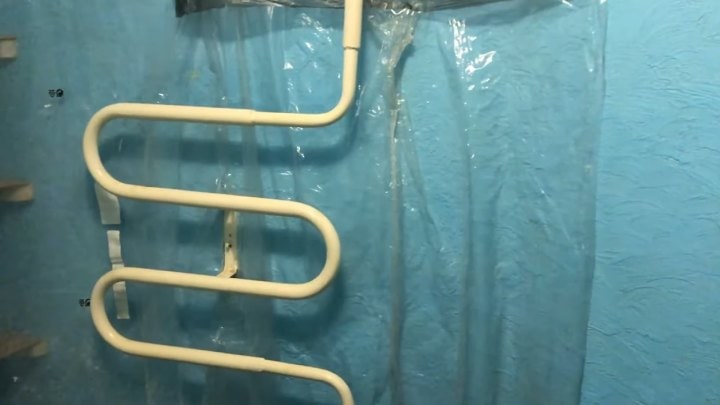 Закройте стену за полотенцесушителем плёнкой. Нанесите универсальную смывку, согласно инструкции, и через некоторое время счистите старую краску.Внимание!