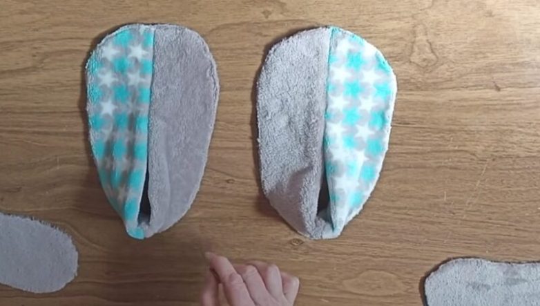 Зашейте отверстие потайным швом и выверните тапочки на лицевую сторону.