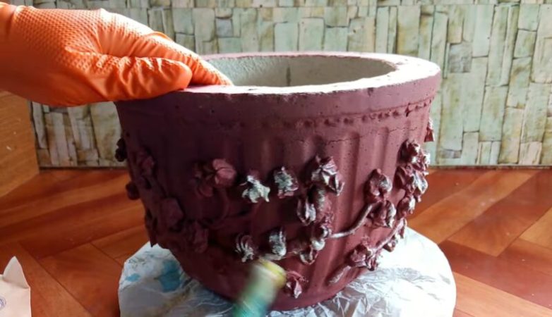 Нанесите на кашпо желаемый узор и оставьте до полного высыхания.