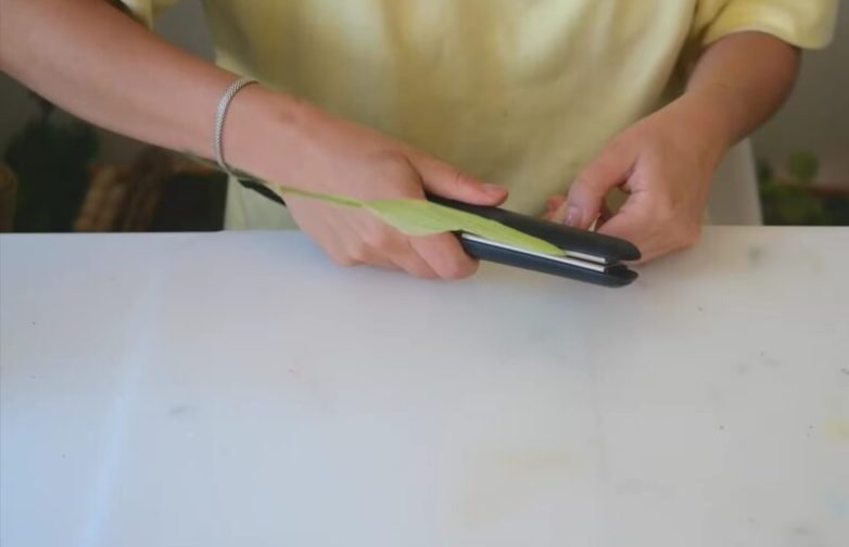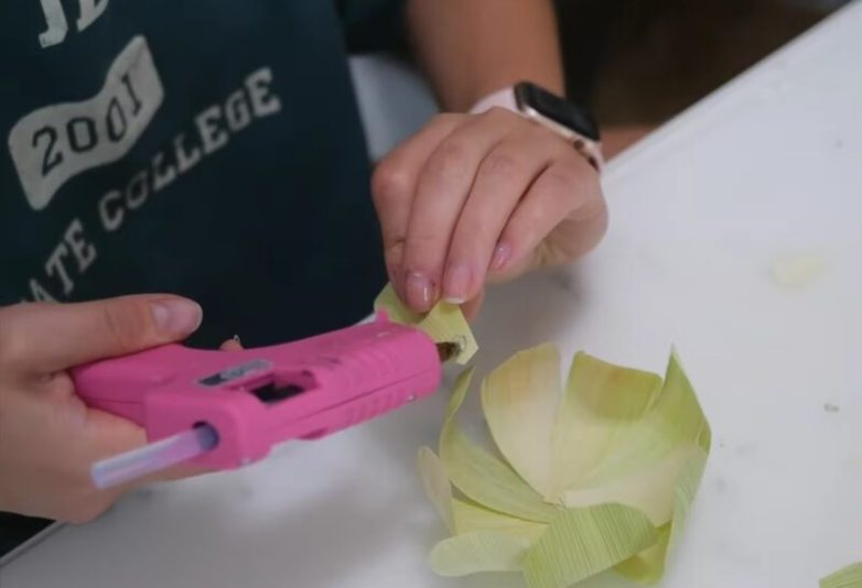 Подсушите шелуху от початков кукурузы под солнечными лучами так, чтобы она оставалась слегка влажной. Процесс сушки займет ориентировочно час. Каждый листочек выпрямите, используя утюжок для волос.