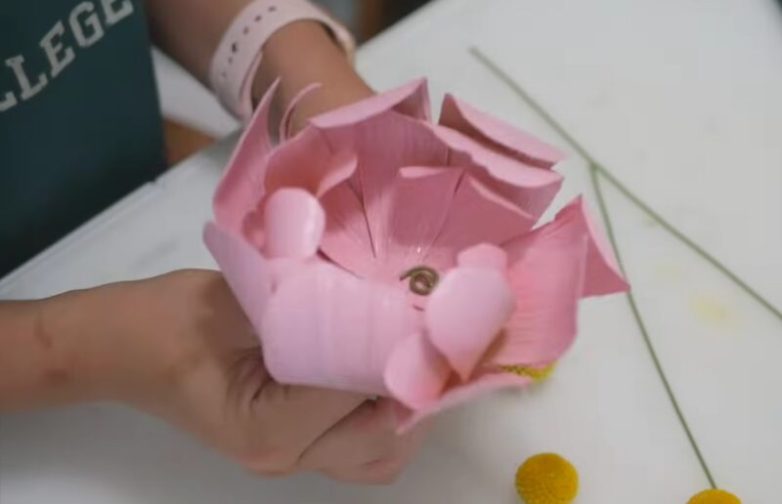 Приклеивайте лепестки до тех пор, пока цветок не приобретет желаемую форму и объем.