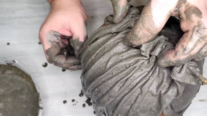 Отрежьте небольшой кусок любой ткани, смочите в жидком цементе и сделайте складки! Удивительно, что из такой простой работы получается такое замечательное изделие. Взгляните, как это просто и интересно!