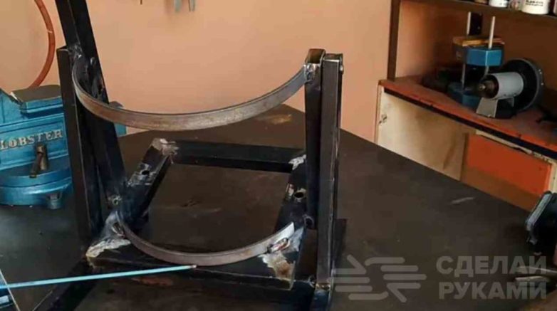 Потом нужно будет приварить две дуги из стальной полосы, которые будут удерживать бутыль.