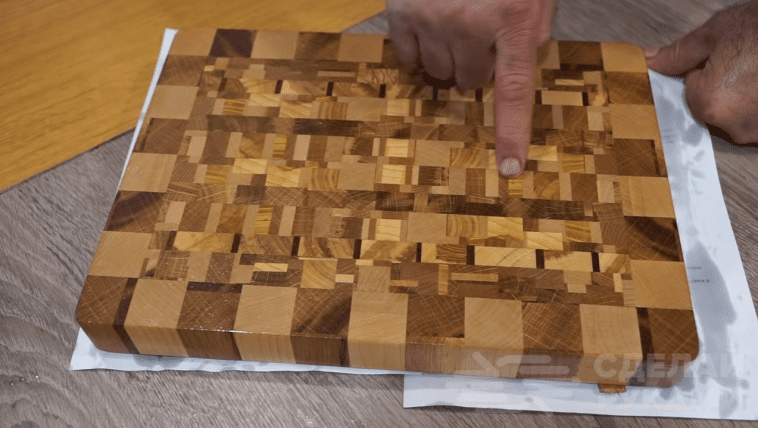 Торцевая разделочная доска и смотрится красиво, и сама по себе достаточно прочная — прослужит долго и не разбухнет после первой мойки под краном.