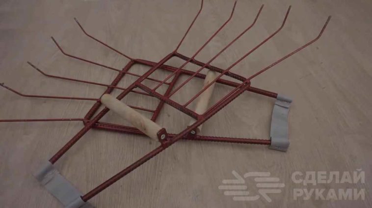 Для изготовления «ручных» веерных граблей потребуются металлические прутки и куски арматуры. Также надо будет сделать две деревянные ручки.