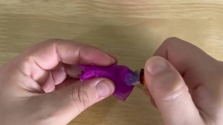 Выньте иглу, чтобы конец ленты вышел с другой стороны. Подпалите его зажигалкой, чтобы зафиксировать.