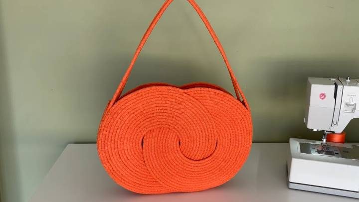 Пришейте вторую деталь из колец. Получилась классная сумочка из шнура! Оригинально и просто.