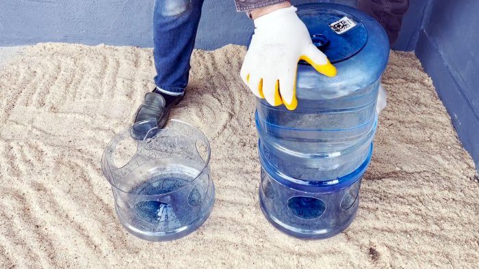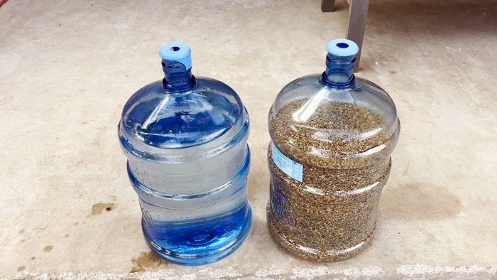 Отрежьте верхнюю часть емкостей при помощи болгарки. Наждачной бумагой удалите зазубрившиеся края.